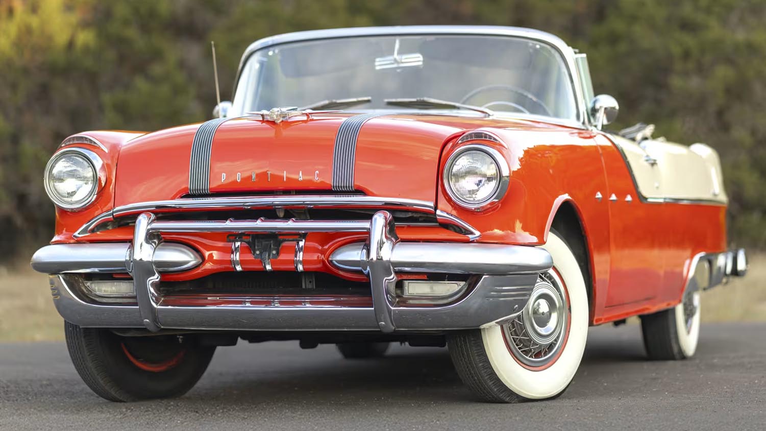 The 1955 Pontiac Star Chief Convertible will take center stage at Mecum Dallas/Fort Worth 2025, crossing the block on Friday, October 31. This striking two-tone red and white convertible captures the elegance and optimism of mid-1950s American motoring. Featuring Pontiac’s first-year Strato-Streak V-8 engine and a smooth automatic transmission, the Star Chief stands as a refined example of postwar design and performance.