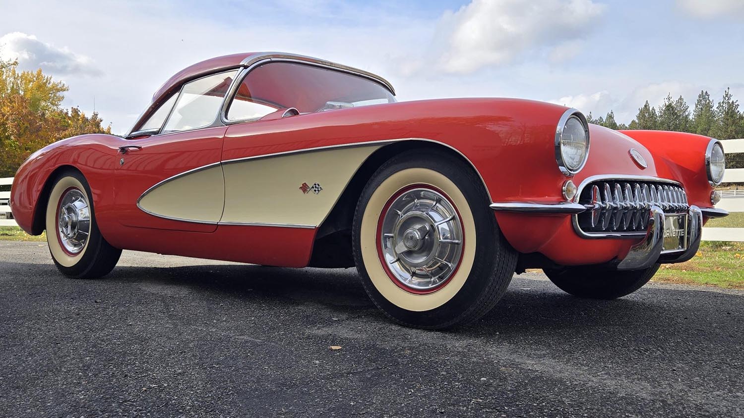 This long-owned 1956 Chevrolet Corvette 283 V8 is a classic American sports car with a strong small-block V8 and a manual gearbox. Its striking red and beige paintwork, combined with the period-correct red vinyl interior, makes it a true head-turner. With a 42-year ownership and recent maintenance to the fuel and starting systems, this C1 is ready for its next chapter with a new enthusiast. The included spare parts and removable hardtop add significant value to this wonderful piece of American automotive.