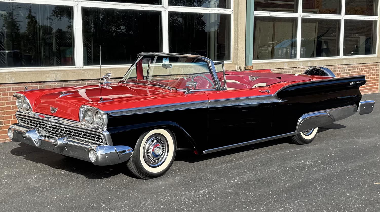 A frame-off restored 1959 Ford Galaxie Sunliner is set to cross the block in Dallas/Fort Worth this November. With its vivid tri-tone interior and power convertible top, this classic Ford blends mid-century style with modern comfort. The focus keyphrase for this article is 1959 Ford Galaxie Sunliner.