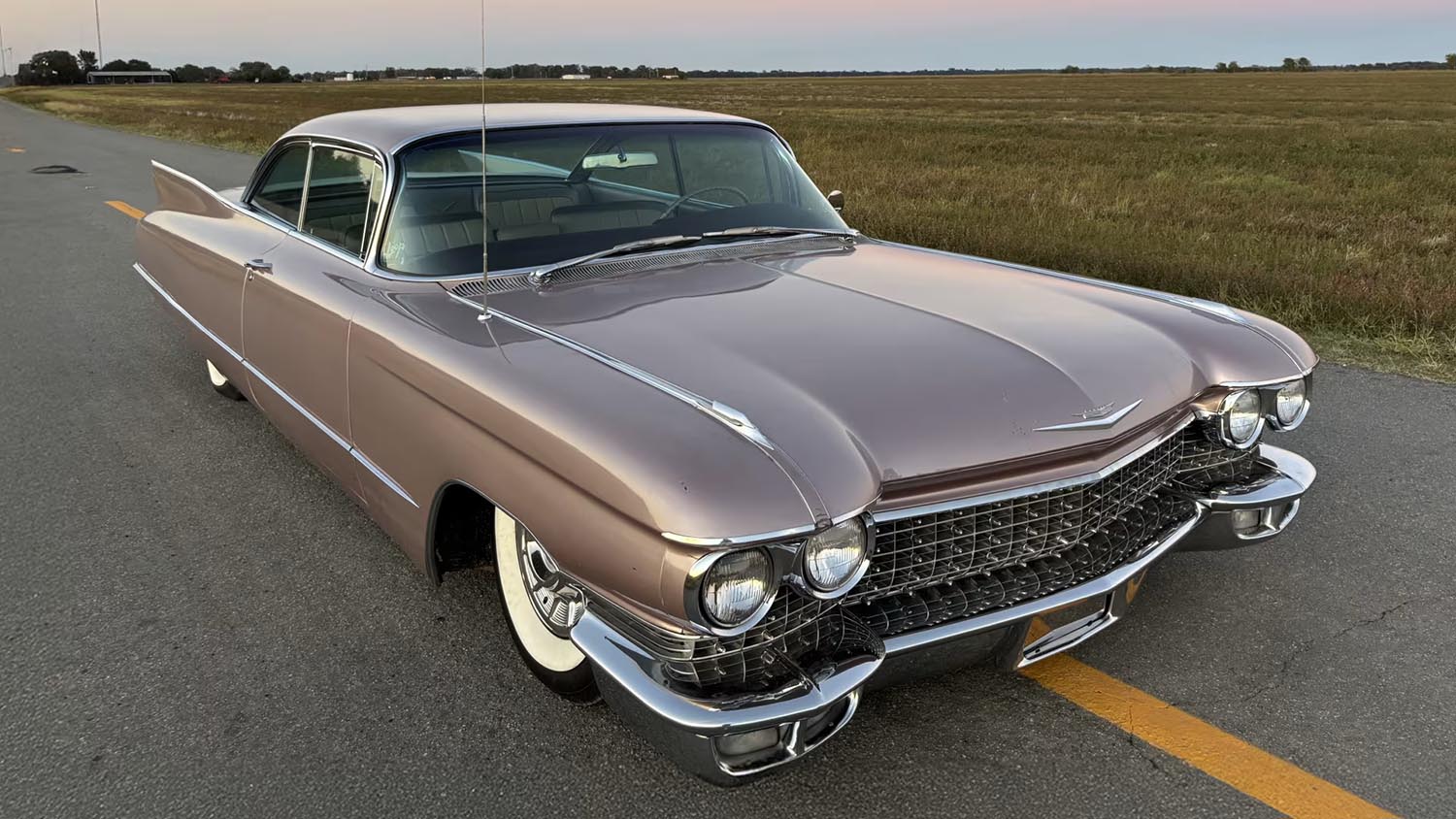 The car’s striking pink exterior sets it immediately apart from other classics. It embodies the flamboyance and optimism of the early 1960s. This vibrant color makes the large two-door coupe truly unmissable. It beautifully highlights the sheer length and subtle curves of the body panels. Conversely, the massive amounts of brightwork and chrome trim provide a stunning contrast. The vehicle is fitted with wide whitewall tires and full-size wheel covers. This combination adds to the period-correct, eye-catching visual presentation.