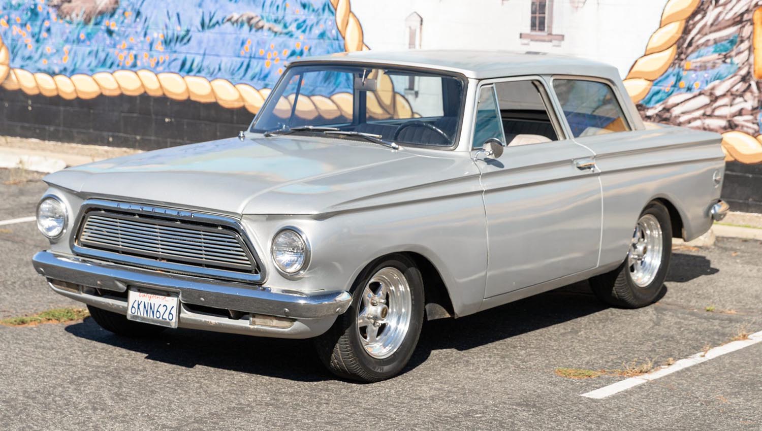 As part of the second-generation lineup introduced in 1961, the Rambler American adopted a cleaner, more modern look. Under designer Edmund E. Anderson, it received unit-body construction that reduced weight and improved rigidity. This particular example wears a silver repaint complemented by chrome bumpers, trim, and a curved rear window that accentuates the coupe profile.