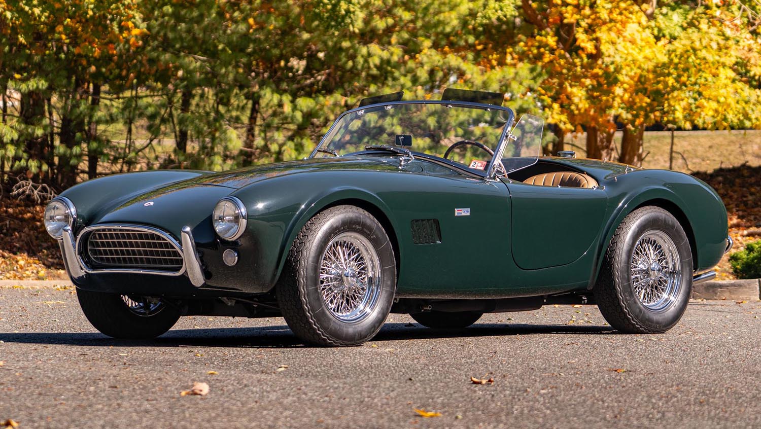 Chassis CSX 2208 left AC Cars in England in late 1963, bound for Los Angeles aboard the SS Loch Loyal. It received its engine and chassis modifications at Shelby American before being delivered to Broad Motors of Philadelphia on January 8, 1964. Ordered in the seldom-seen color of Vineyard Green with Saddle leather, it was equipped with aluminum valve covers, chrome wire wheels, and a luggage rack, priced at $5,584.05.