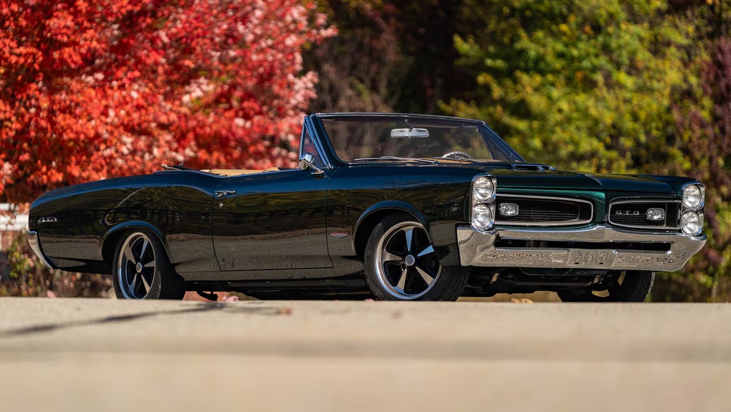 Custom-built by Count’s Kustoms and finished in British Racing Green, this 1966 Pontiac GTO Custom Convertible blends vintage muscle with modern precision. The focus keyphrase is 1966 Pontiac GTO Custom Convertible.