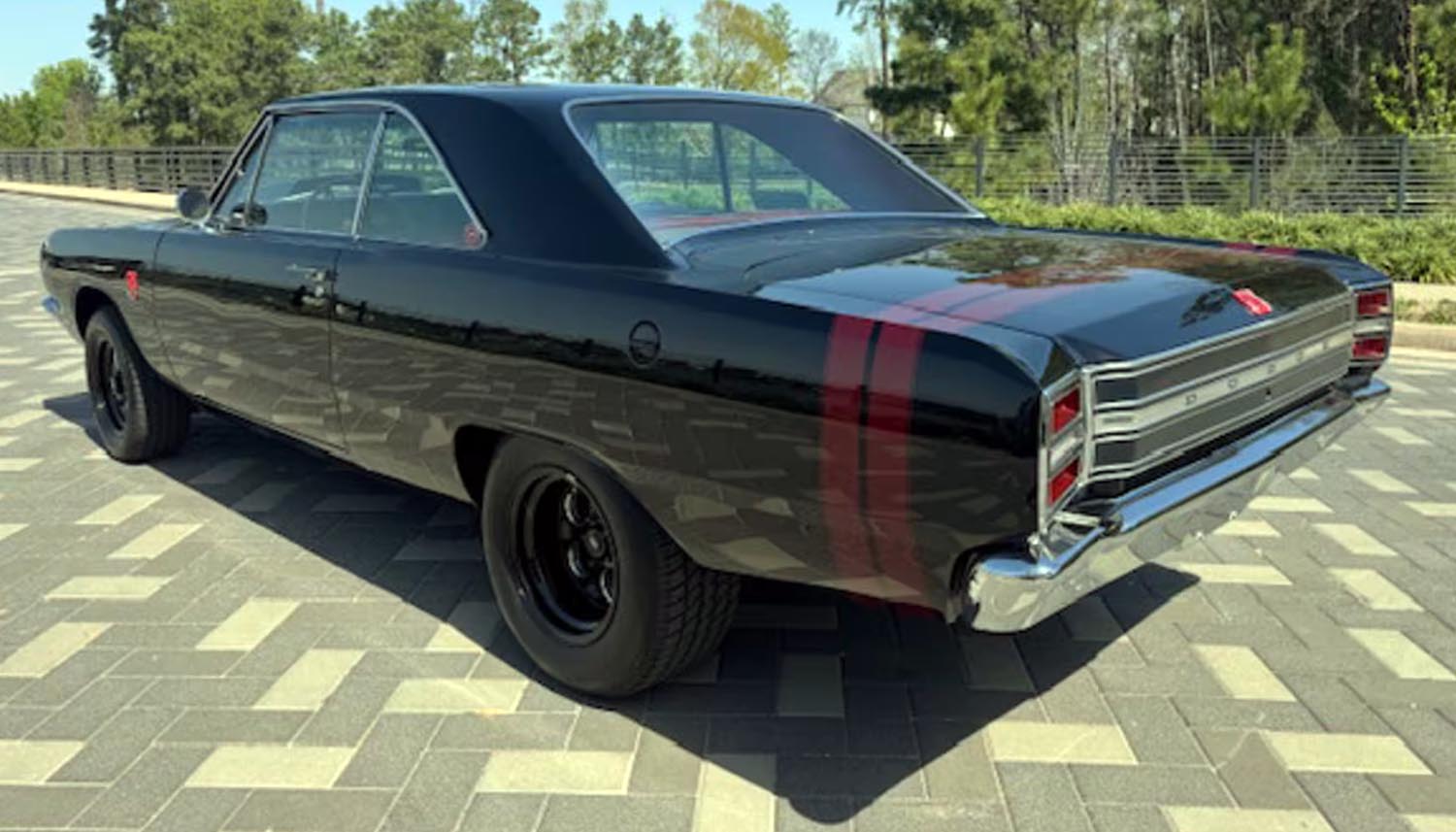 This Dodge Dart has undergone a no-expense-spared build, elevating it beyond a typical restoration. Its deep black finish is accented by double red tail stripes and authentic GTS badging, paying tribute to Dodge’s late-1960s muscle heritage. The bold red interior adds contrast and complements the exterior’s aggressive aesthetic.