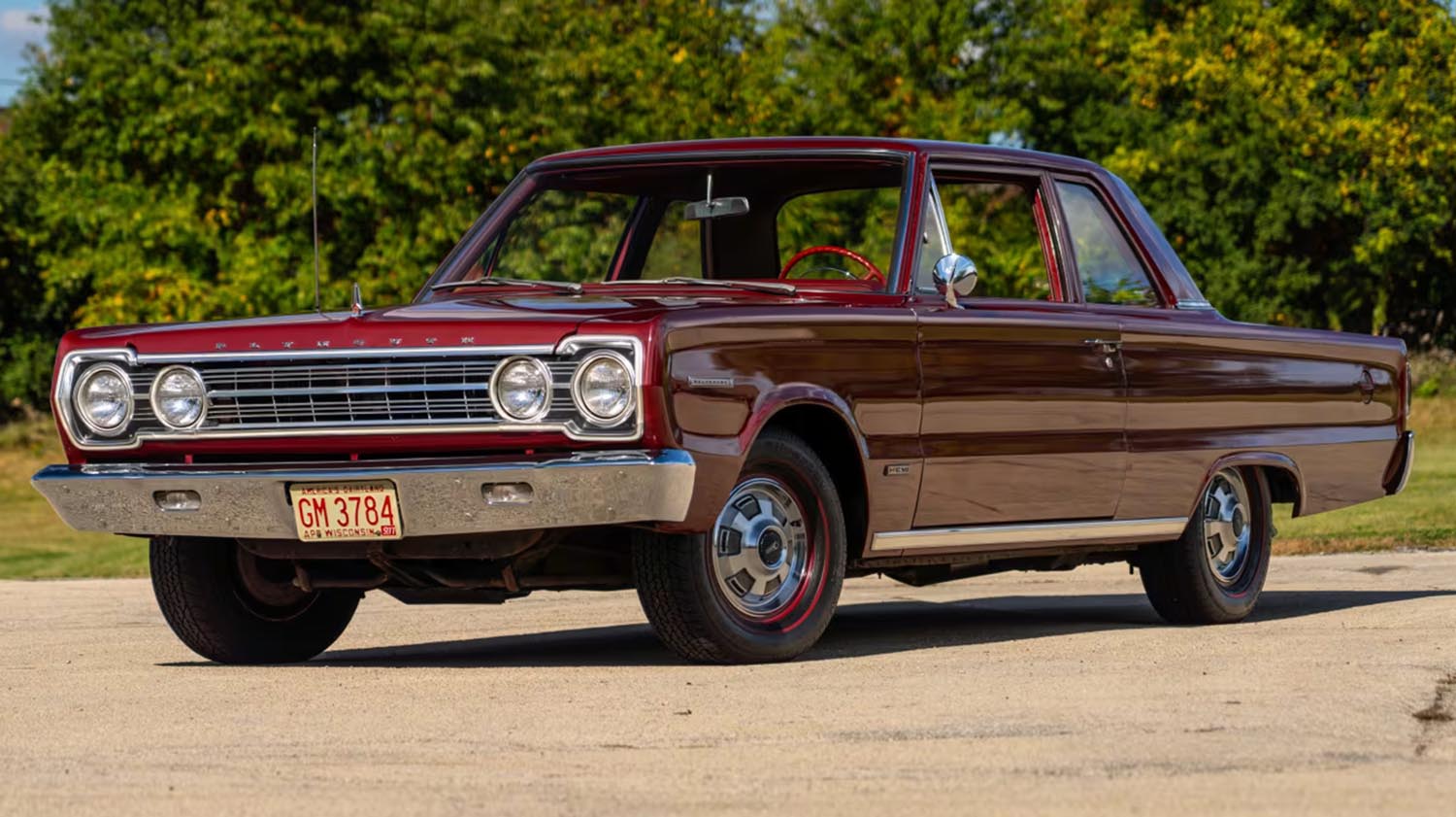 This Red Belvedere I stands out with its original paint, full-size wheel covers, and redline tires. The sedan’s clean lines and classic 1960s styling capture the spirit of the era. Chrome accents and a color-matched steel wheel setup enhance its understated yet commanding presence.