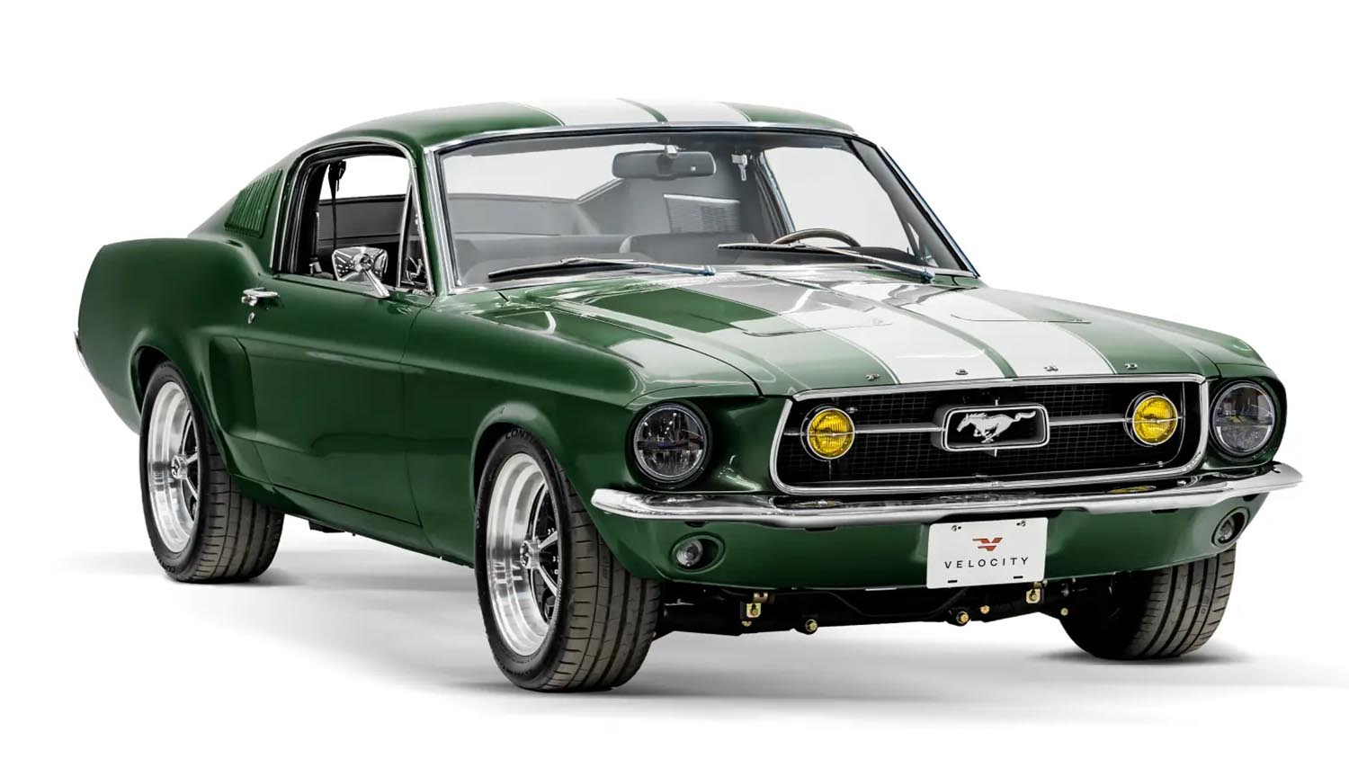 The 1967 Velocity Signature Series Ford Mustang Fastback blends classic American muscle with modern engineering. Its Moss Green Glasurit paint and hand-painted white racing stripes make a striking statement.