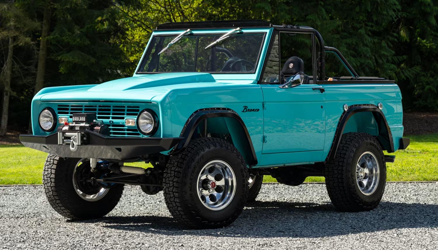 The 1968 Ford Bronco 351 V8 embodies the spirit of classic American off-roading. This particular model is a fantastic example of a first-generation Bronco. It retains its iconic vintage look while incorporating numerous modern performance enhancements. Finished in a striking Tiffany Blue color, this SUV demands attention wherever it goes. It is ready for serious adventure, featuring a powerful V8 engine and a rugged, custom-built chassis.