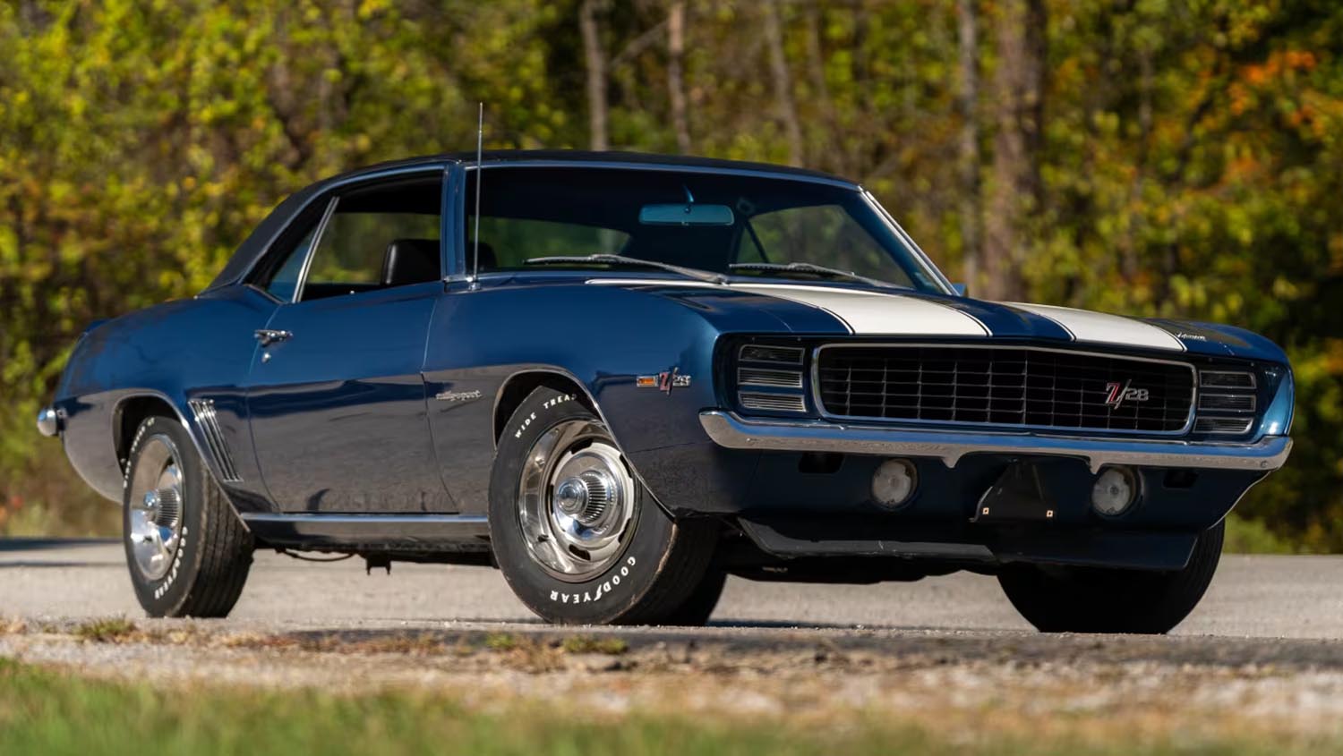 The 1969 Chevrolet Camaro RS Z28 Coupe stands among the most sought-after muscle cars of its era, combining refined style with legendary performance. Finished in its original Dusk Blue with a Black vinyl top, this particular example represents one of just 206 cars built with the JL8 four-wheel disc brake option, making it an exceptional collector’s piece.