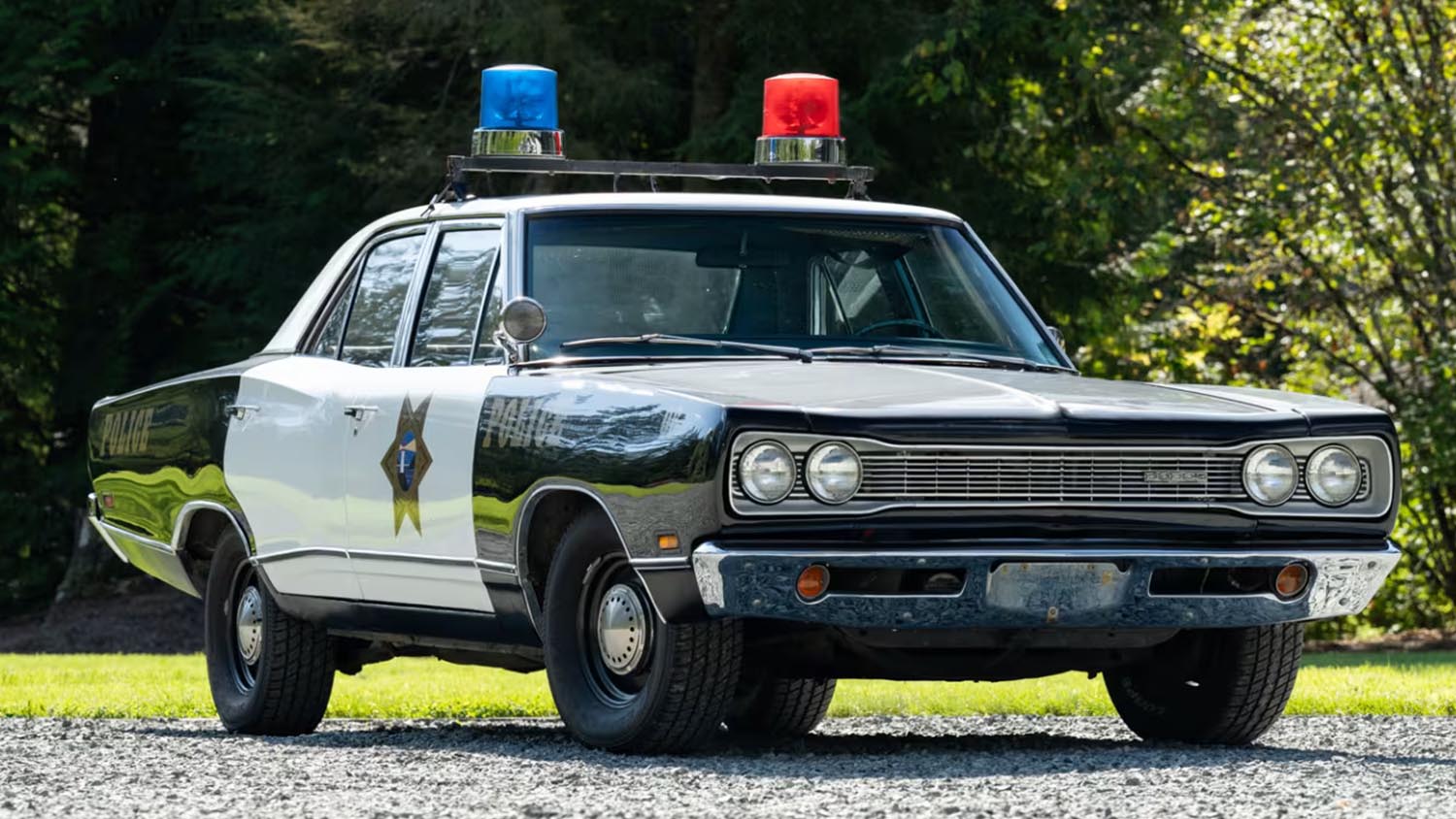 This **1969 Dodge Coronet 440 Sedan** is a well-documented piece of Mopar and Hollywood history. It features the correct black and white police livery and period equipment. This includes a Dominion light bar and Motorola radio. The car has an extensive on-screen career, appearing in both major films and television series. Its engine has been updated to a robust 318 CI V-8 with an automatic transmission. This rare prop car offers a unique connection to popular culture.