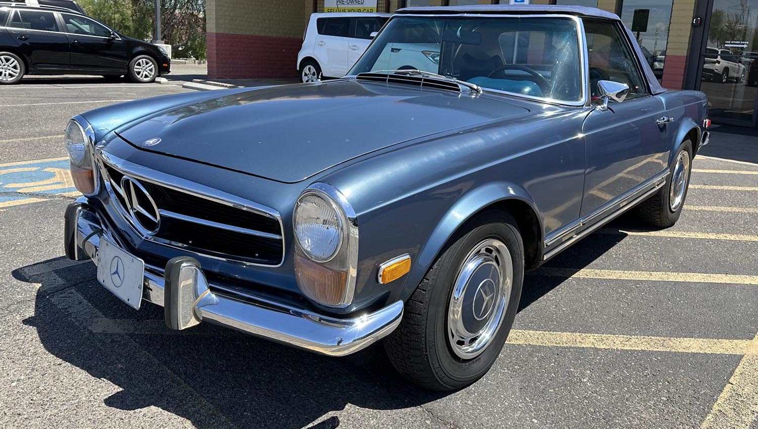 The 1970 Mercedes-Benz 280SL is powered by the 2.8-liter M130 inline-six engine. This engine uses Bosch mechanical fuel injection, a sophisticated system for its time. Factory specifications rated this robust engine at 180 horsepower, delivering smooth power delivery. The M130 is paired with a four-speed automatic transmission, sending power to the rear wheels. This powertrain combination provides a relaxed, grand-touring character. The seller notes that the transmission seals and radiator are currently leaking, which is typical for a car of this vintage. A replacement fuel pump was installed under previous ownership.