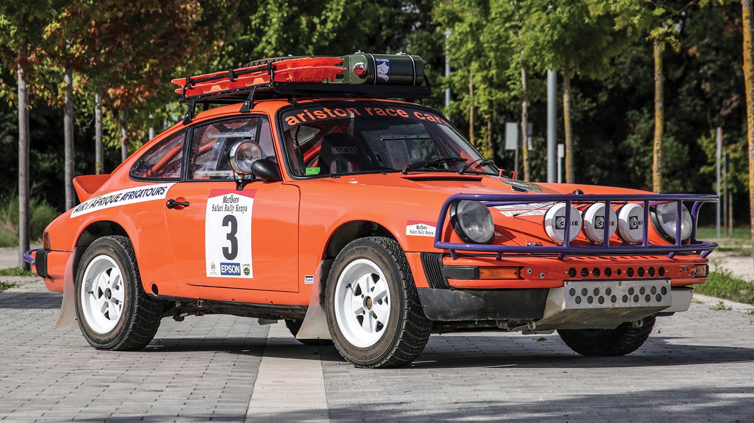 Originally a 1977 911 2.7 Coupé, this car was transformed in the mid-2010s into its current rally-ready form. The chassis was dismantled, strengthened at key suspension points, and significantly lightened. Polycarbonate windows replaced glass, and a 10-point roll cage added structural rigidity.
