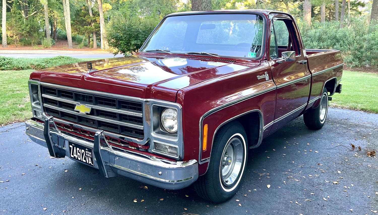 Originally finished in Dark Carmine Red, this 1979 Chevrolet C10 Silverado has been repainted and re-trimmed under current ownership. The focus keyphrase, 1979 Chevrolet C10 Silverado, marks a well-preserved example of late-’70s pickup design with practical upgrades and vintage charm.