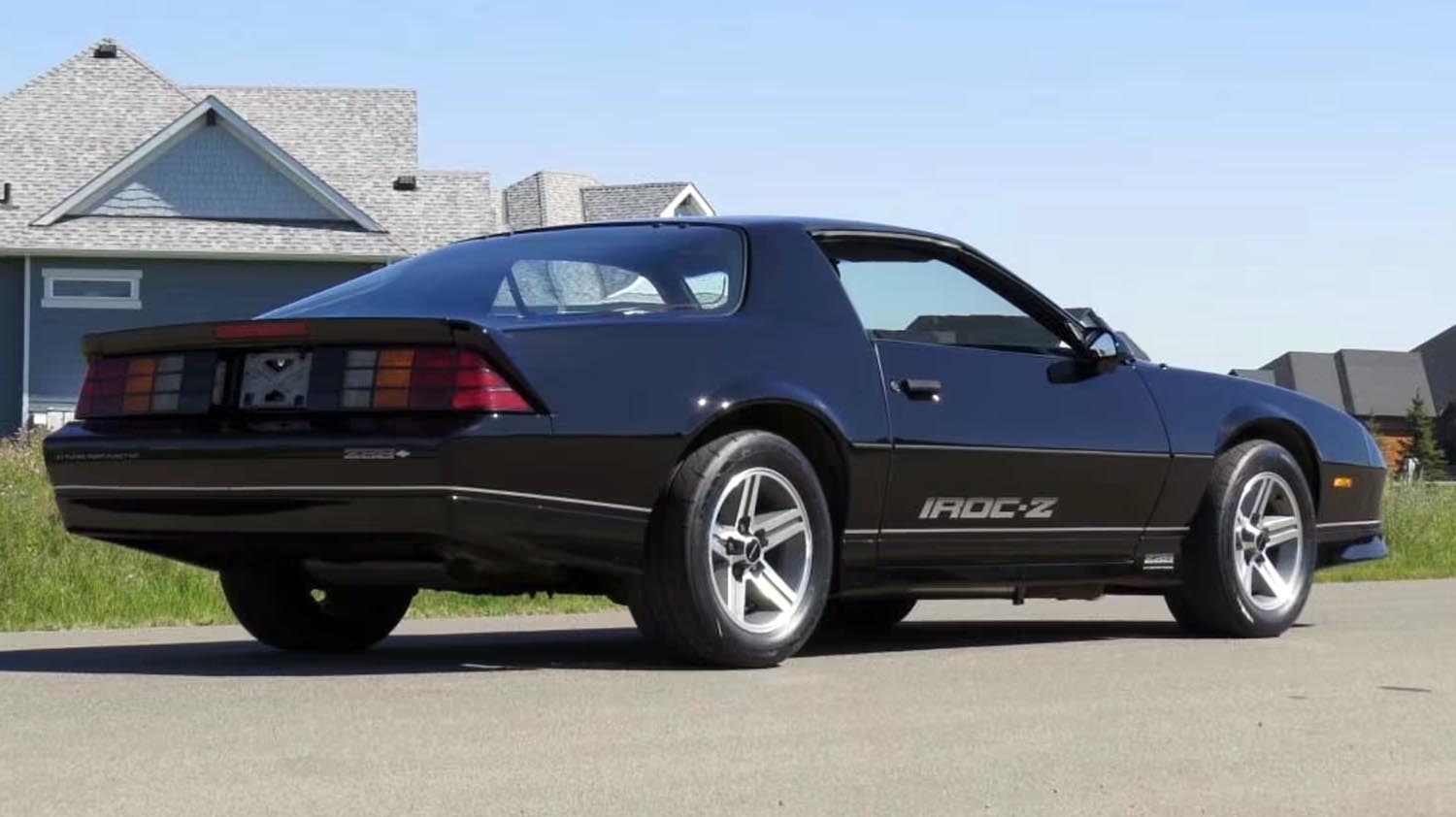 The mostly original black paint remains a highlight, accented by removable glass T-Tops that define 1980s Camaro style. The IROC-Z’s signature 16-inch alloy wheels and sharp body lines reflect the model’s blend of muscle and modern design.