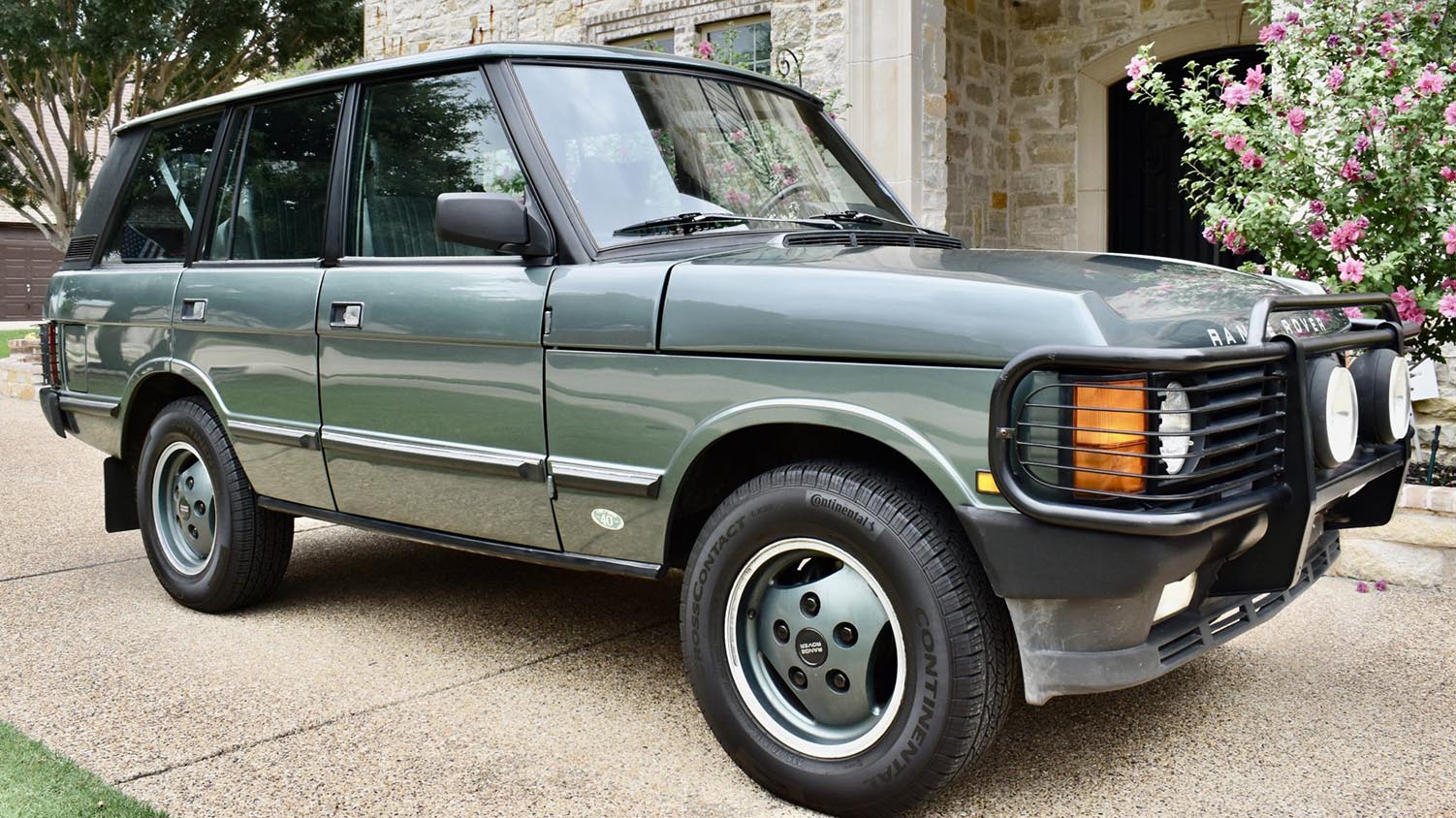 Land Rover celebrated its 40th anniversary with subtle sophistication. The Cypress Green Metallic finish gives this Range Rover a grounded yet refined appearance. Over the years, the truck received several cosmetic updates, including repainting the hood, roof, and front fenders. Exterior features such as the brush guard, power sunroof, and taillight grilles highlight its classic off-road readiness. Despite some minor trim looseness, the body retains a clean and authentic presence.
