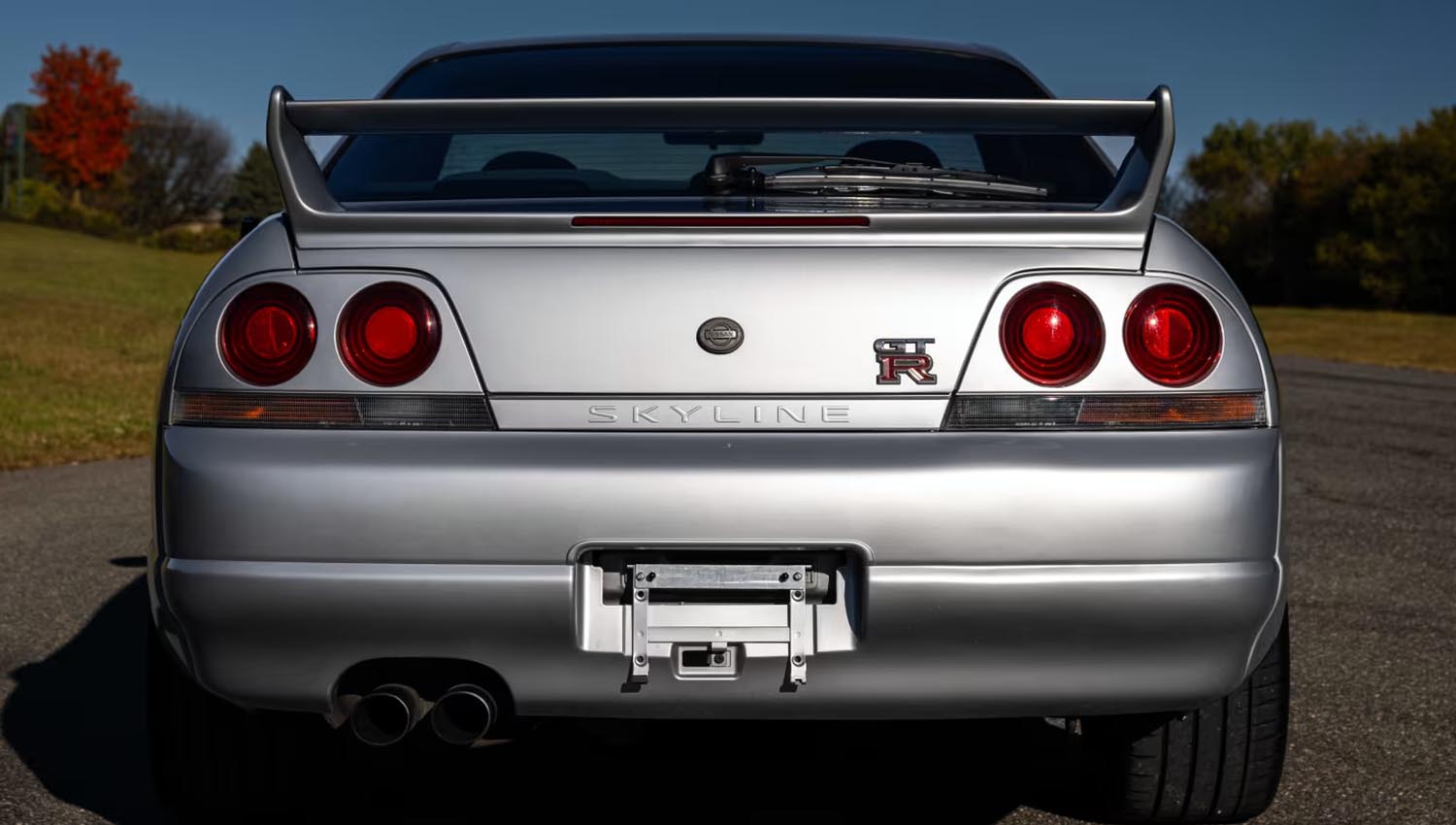This R33 GT-R wears Spark Silver paint over a ceramic-coated body. It crosses the block in Las Vegas on November 15. Lot V318 represents a legally imported Series 1 car with verified mileage and clean Japanese Car VX documentation.