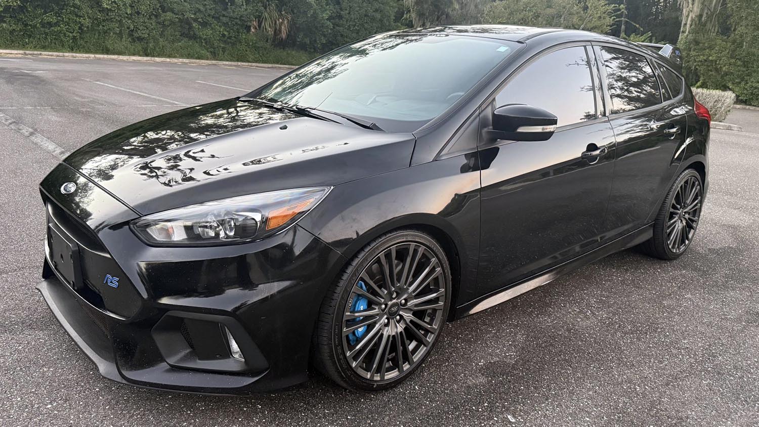 The 2017 Ford Focus RS was built for dynamic handling and quick changes of direction. It comes with a Sport suspension that features driver-selectable modes. Launch control also came equipped from the factory. The car rides on 19-inch dark gray-painted alloy wheels. These wheels are currently fitted with 235/35 Falken Azenis FK460 A/S tires. Stopping power is provided by four-wheel disc brakes. High-performance Brembo calipers are utilized up front. Brake rotors and pads were reportedly replaced in March 2023. Recent maintenance in September 2025 included strut mount and tie rod end replacement.