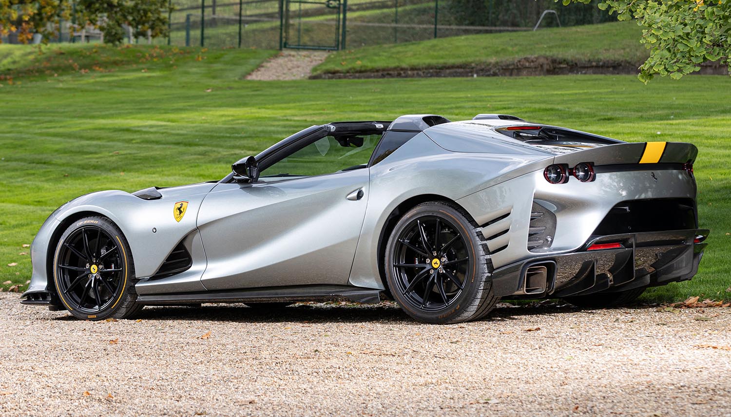 This 2023 Ferrari 812 Competizione A is a product of Ferrari’s prestigious Atelier personalisation programme. The specification is attractive and befits a limited-edition Prancing Horse. The exterior finish is the custom shade of Grigio Competizione. A glossy Giallo Triplo Strato central stripe, with Nero outer edges, complements it. The interior features luxurious Charcoal Alcantara.