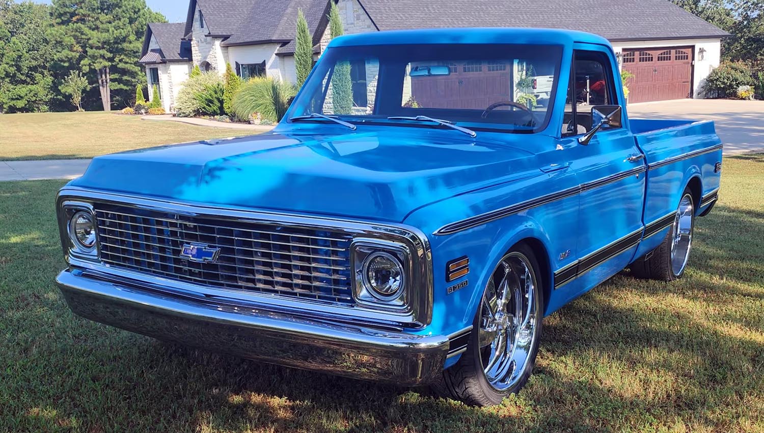 1957 Chevrolet Bel Air Custom Hardtop with 650 HP LT4 engine and fiberglass body crosses at Kissimmee 2026. Built by Jim Bryant and finished by friends, this one-off coupe features a custom chassis, Weld wheels, and bold Black/Silver paint.