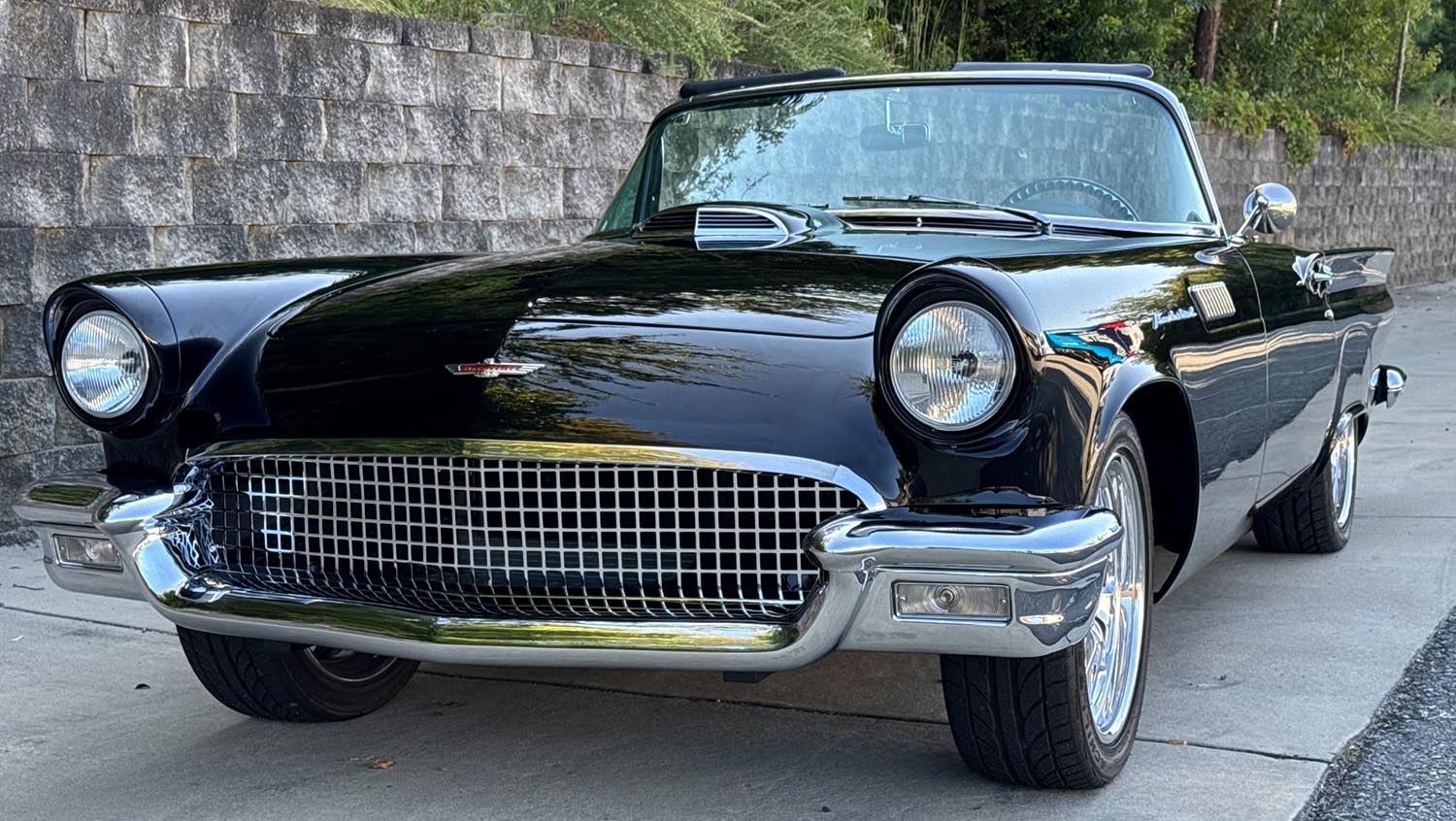 The 1957 Ford Thunderbird has been reimagined for the modern era with a powerful 5.0-liter Coyote V8 engine and a six-speed automatic transmission. This Coyote-powered 1957 Ford Thunderbird blends vintage design with cutting-edge performance, delivering a unique restomod experience for enthusiasts.