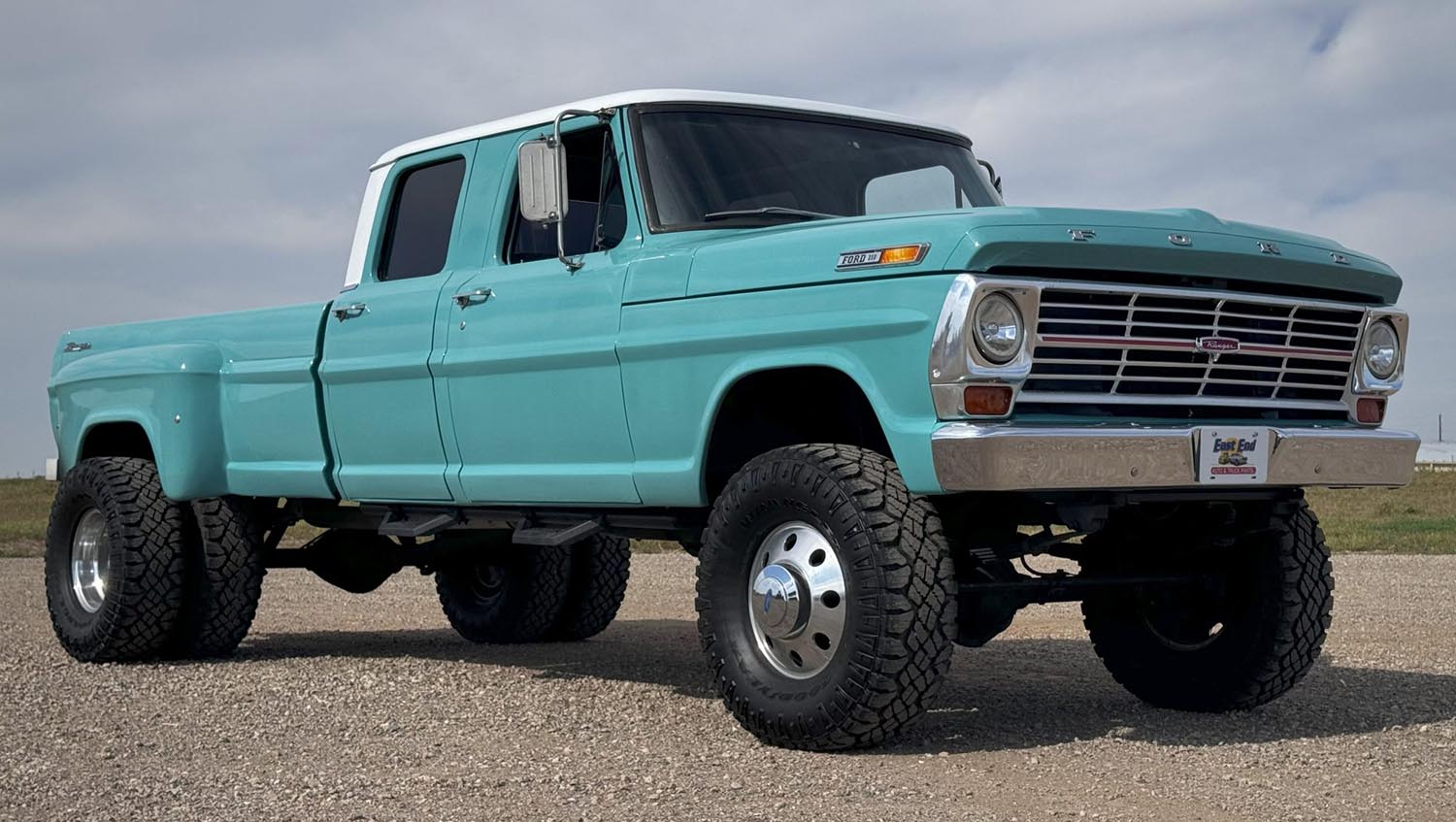 The Cummins-Powered 1969 Ford F-250 Dually stands as a brilliant example of cross-brand synergy in the truck world. It combines the handsome, rugged style of the fifth-generation Ford F-Series with the legendary durability of a Dodge powertrain. This customized Crew Cab body now rides atop the full chassis and mechanicals from a 1993 Dodge Power Ram W350. The resulting four-wheel-drive dually is a powerful, heavy-duty machine built for work and command.