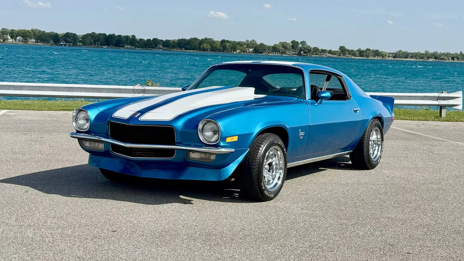 1968 Chevrolet Camaro SS 350 finished in Fathom Blue with RS grille and Rally wheels. This four-speed coupe features a 295hp L48 V8 and blue vinyl interior.